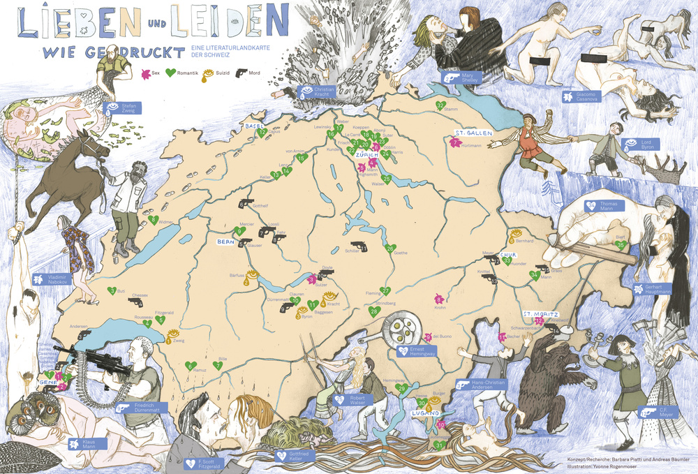 Literaturlandkarte zum Interview mit der Literaturgeografin Barbara Piatti